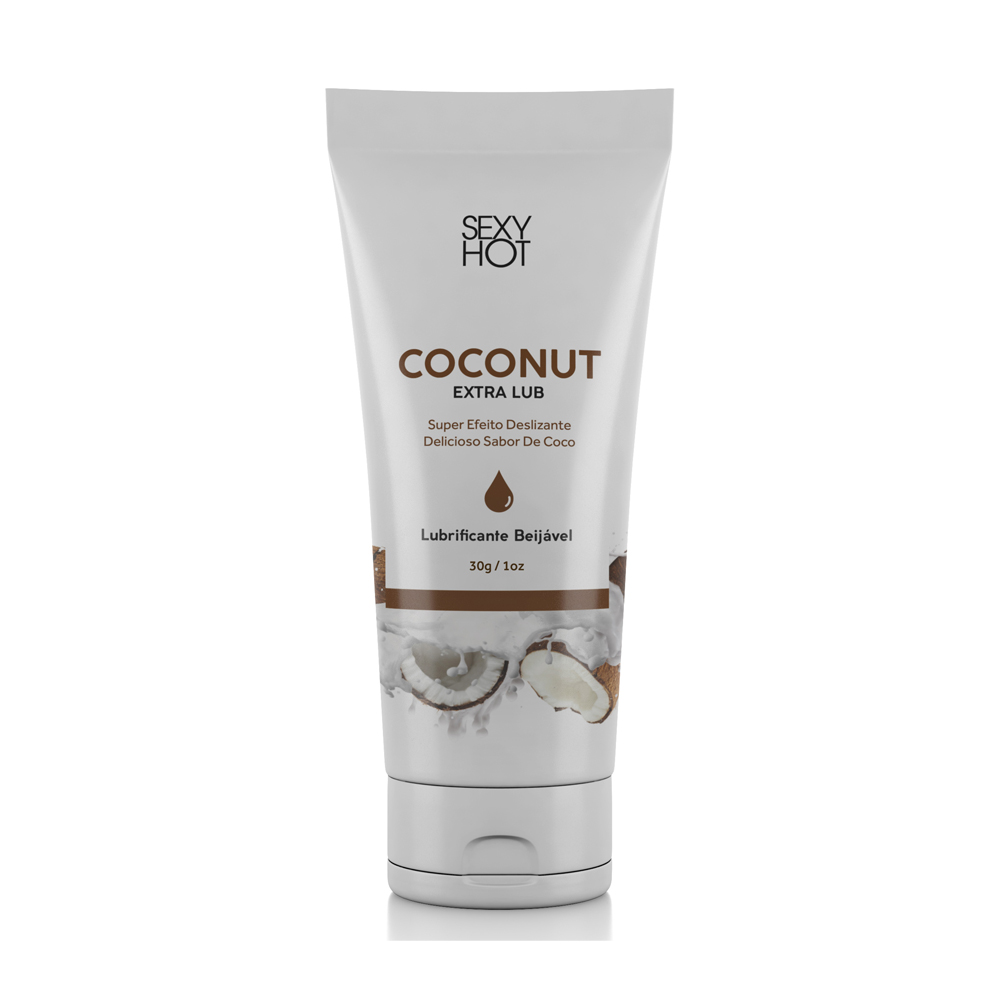 Extra Lub Coconut da Sexy Hot é um lubrificante íntimo com sabor delicioso de coco e fórmula vegana, feito com ativos brasileiros e naturais.